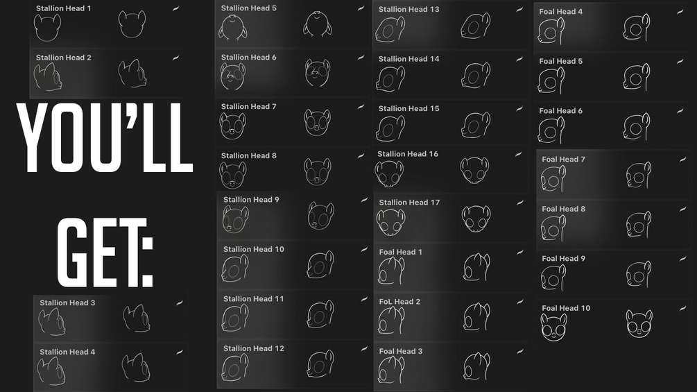 Qty: 1You will get 45 different head turns for the stallion and mare ponies. Use them for your drawings, adoptables, commissions, etc.